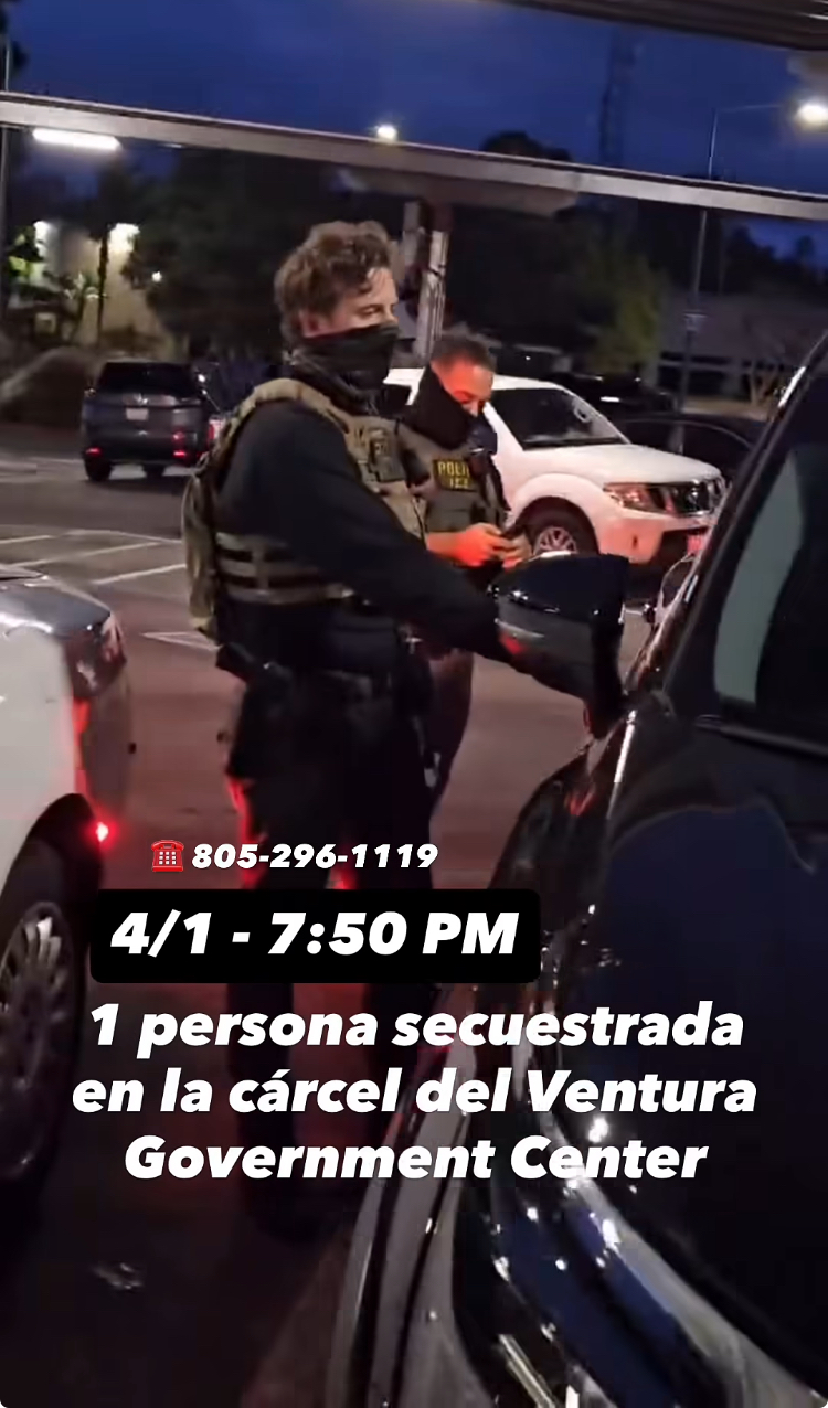 one person was kidnapped by ice outside the ventura county government center jail tonight at 7:50pm. if you can help ide ..